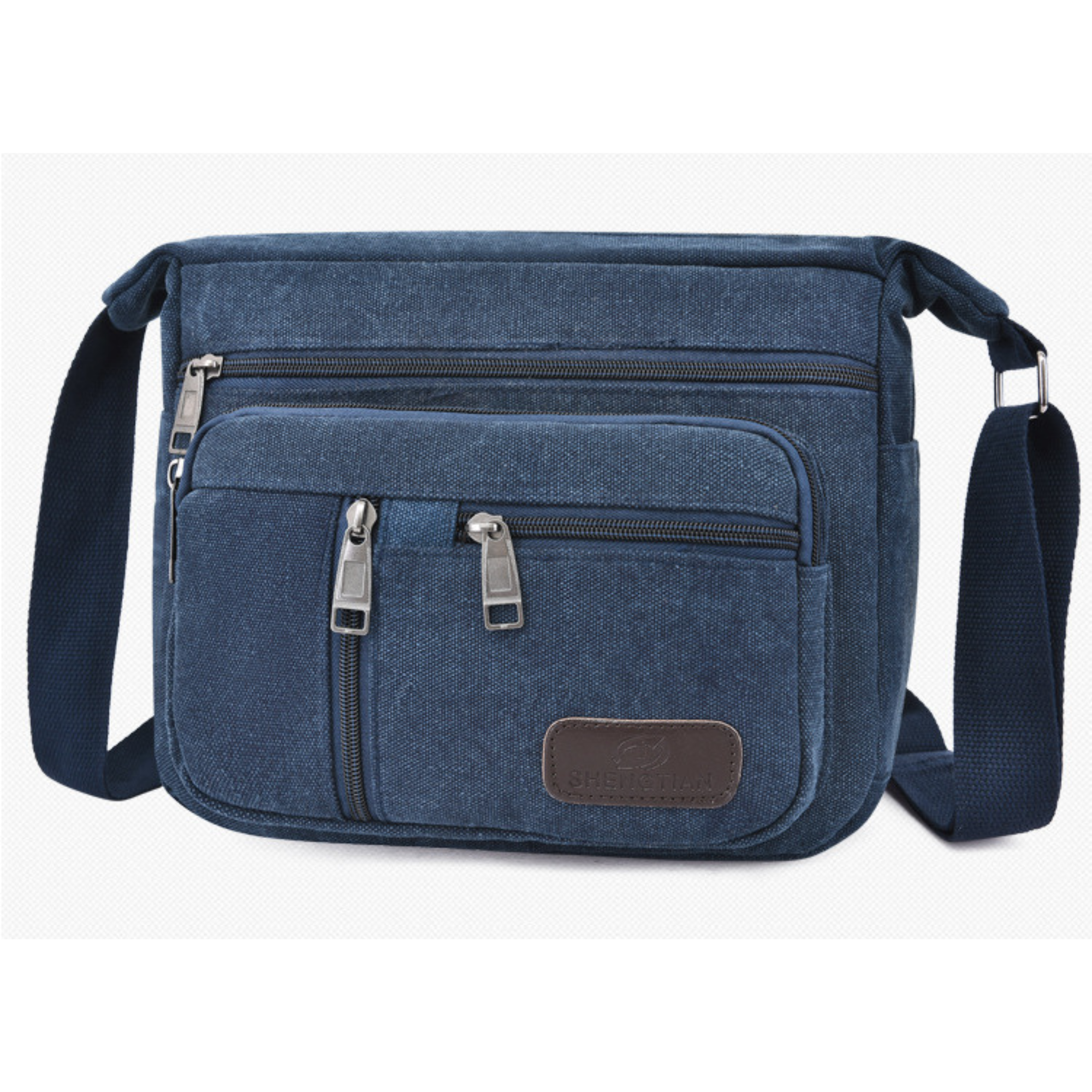 Small Canvas Crossbody Satchel – 5 Zipper Bag for Men & Women