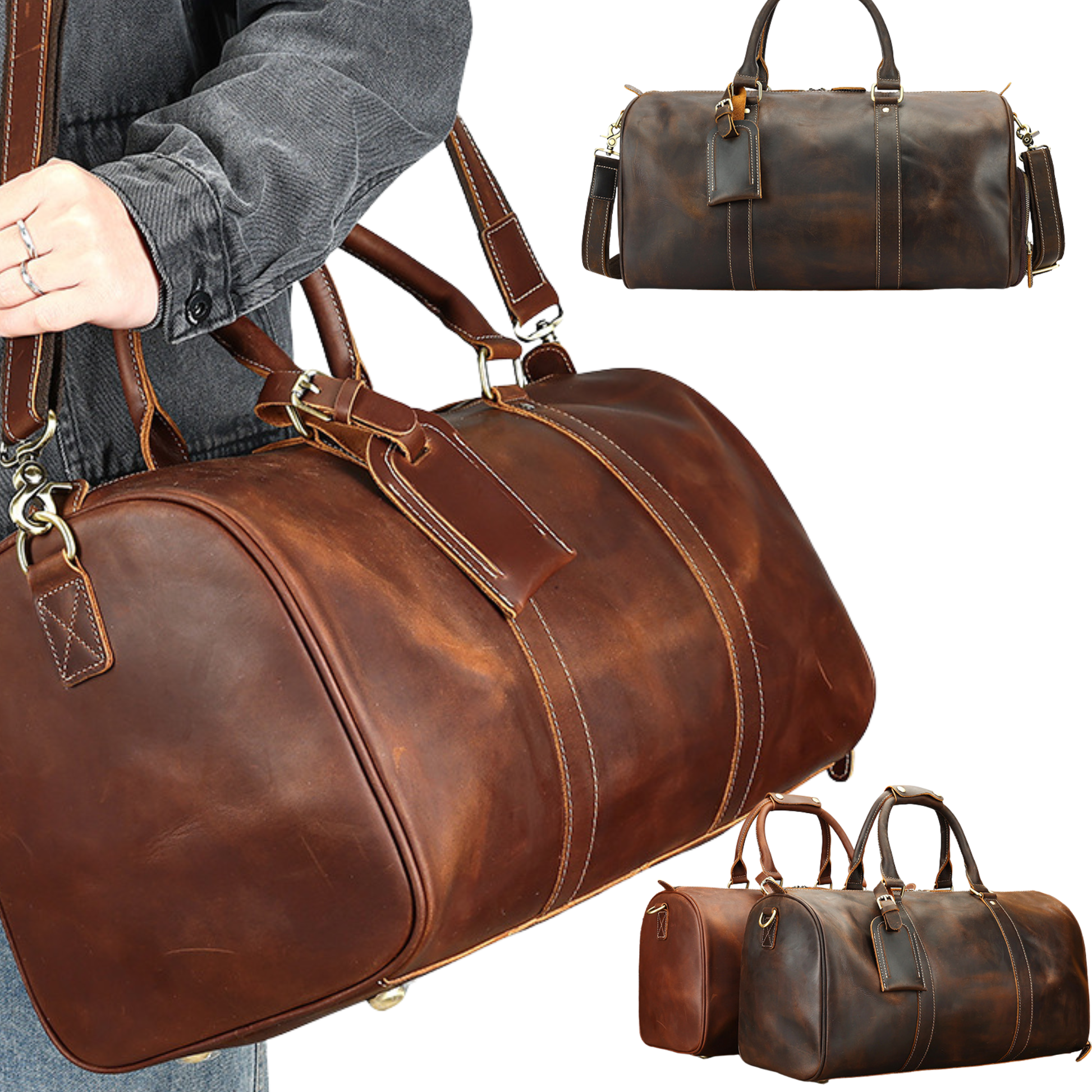 Designed for weekends away, business travel, or everyday use, this premium full-grain leather duffel combines timeless vintage style with modern functionality. Crafted from genuine Crazy Horse cowhide leather, each bag develops a rich, individual patina over time — no two are ever the same.