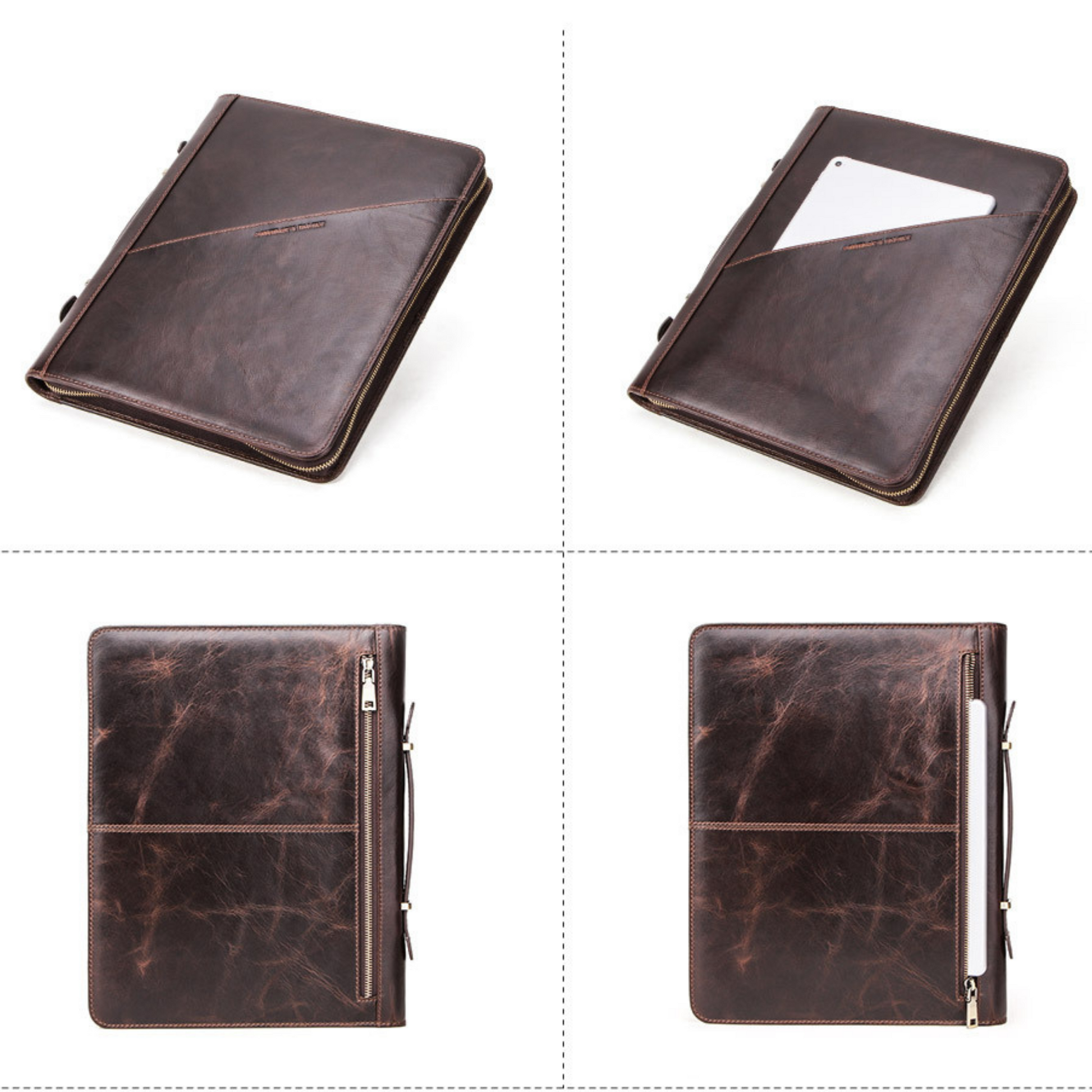 Elevate your professional game with this premium Crazy Horse Leather Compendium — a sleek, all-in-one organiser built to carry your entire mobile workspace. From laptops and tablets to notepads, phones, pens, and business cards, everything has its place in this refined yet rugged case.