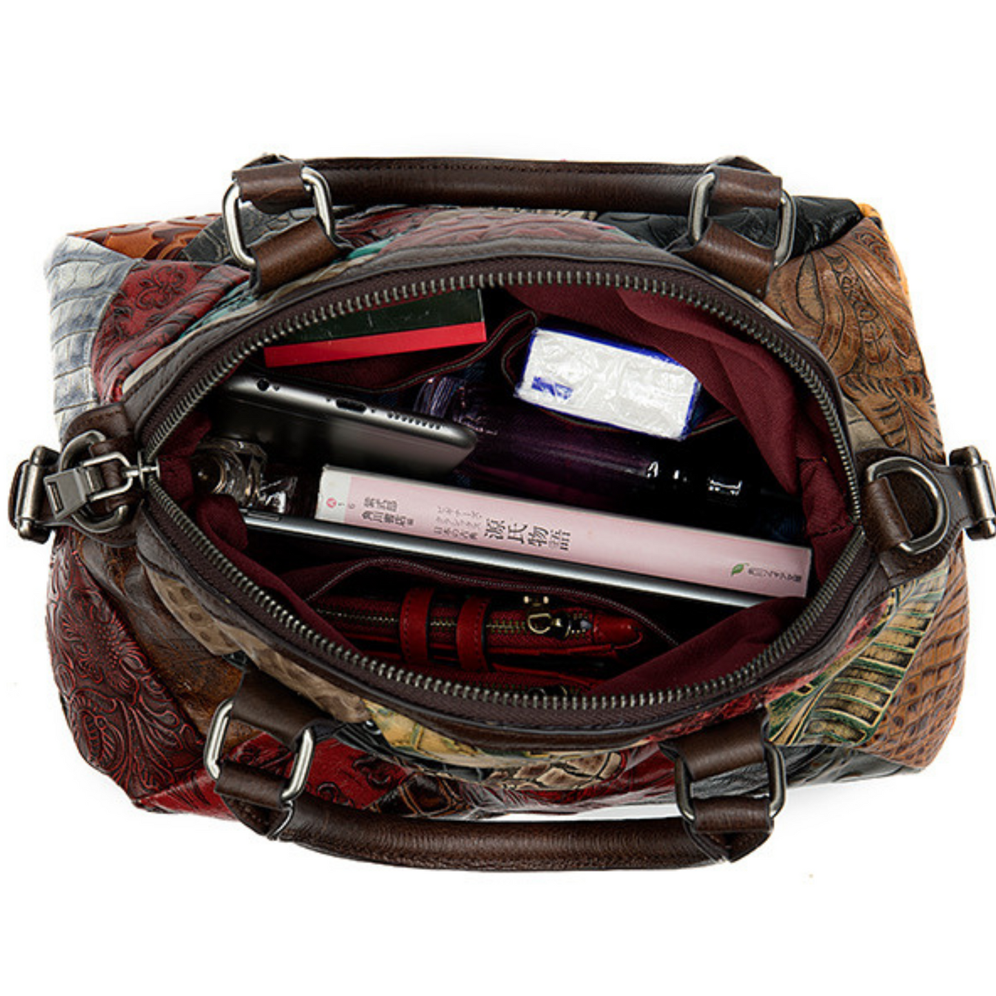 Italian Multi-Coloured Leather Tote – Convertible Carry & Shoulder Bag