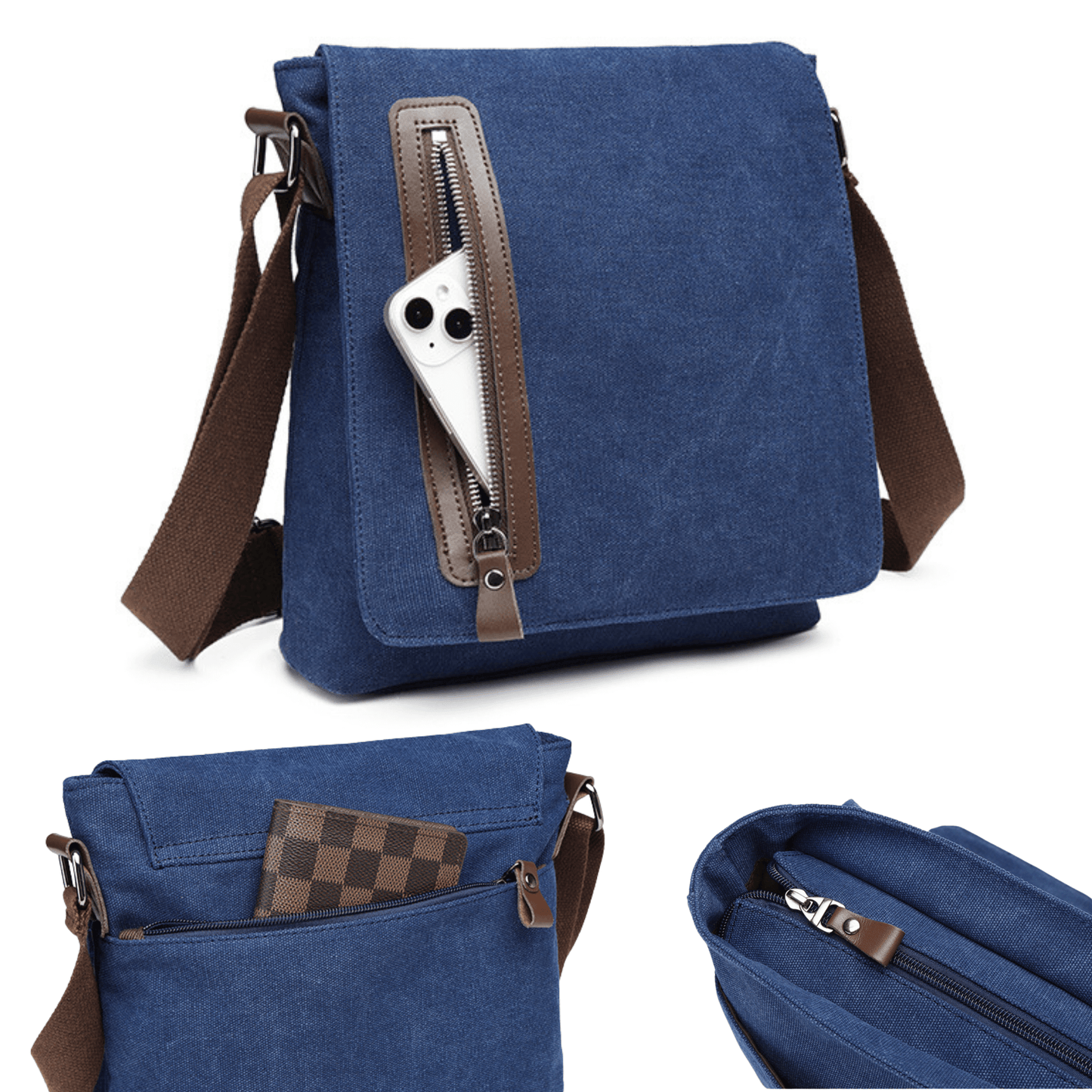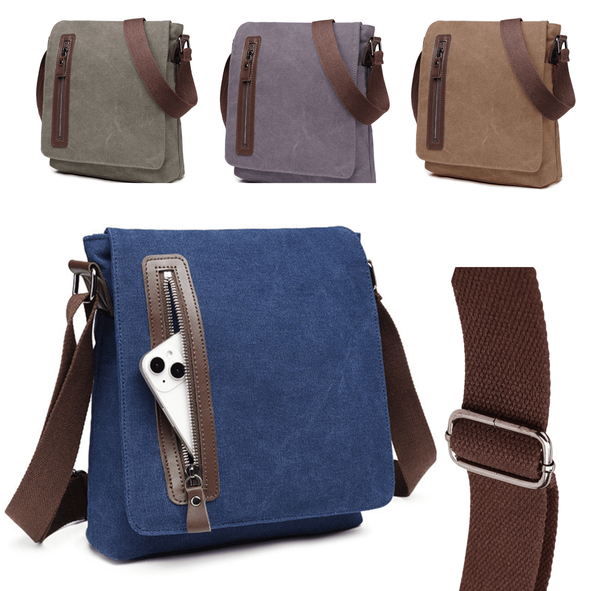 Men’s Canvas Cross Body Messenger Bag – Lightweight Shoulder Satchel